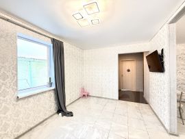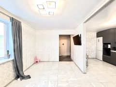 На первом этаже расположена прихожая, комната, сан узел и шикарная кухня гостиная с новым кухонным гарнитуром и встроенной техникой.