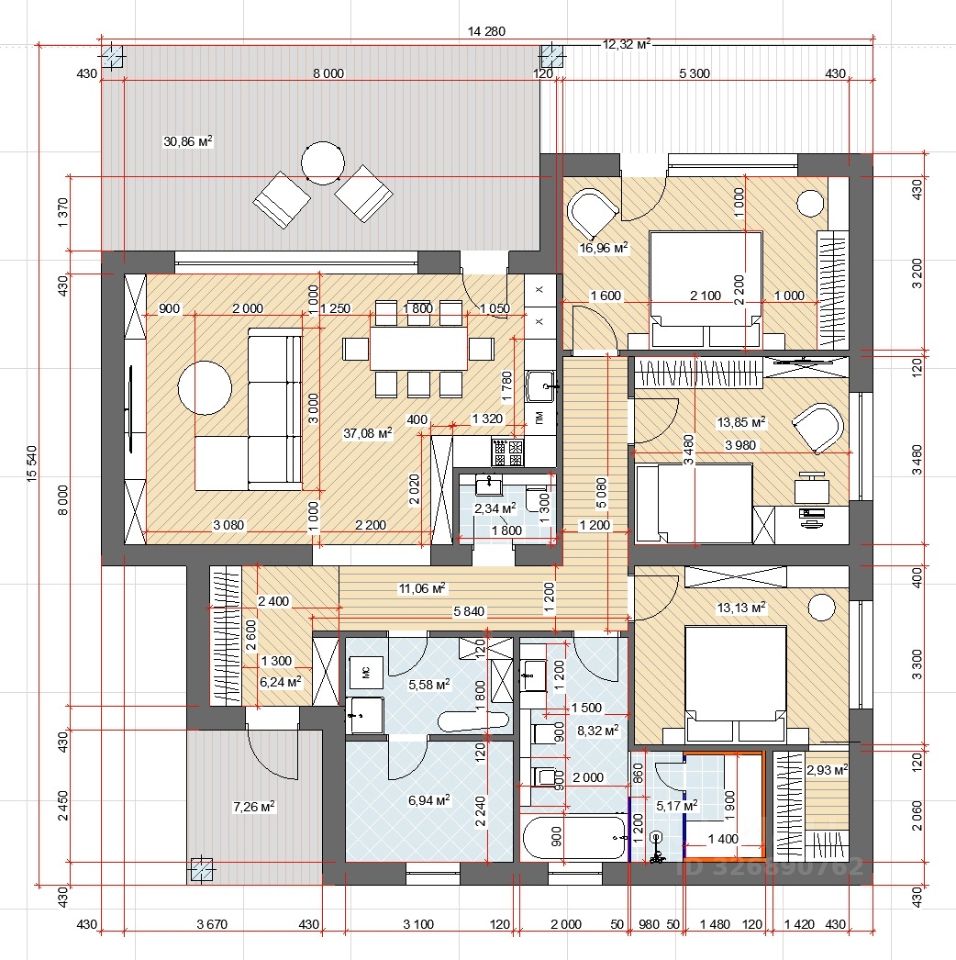 • Площадь дома: от 171 до 176м² в зависимости от планировки.