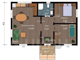большая кухня гостиная с возможным выходом на террасу 25.7 кв.м., две уютные спальни по 8.41 кв.м., широкий просторный коридор 7.77 кв.м., санузел 4.51 кв.м.