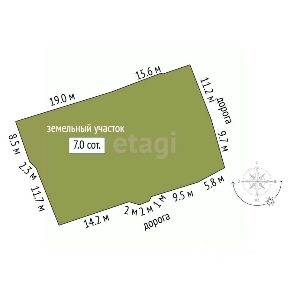 Технические характеристики: участок площадью 7 соток, правильной формы размером 19 на 32 метра, угловой , удобный подьезд строительной техники.