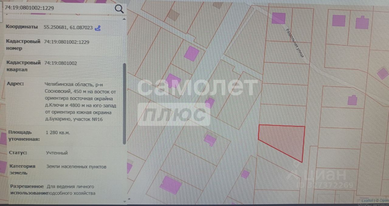 Арт. 132165483 Участок в Ключах, кадастровый номер 74:19:0801002:1229. Один взрослый собственник, без ограничений и обременений.