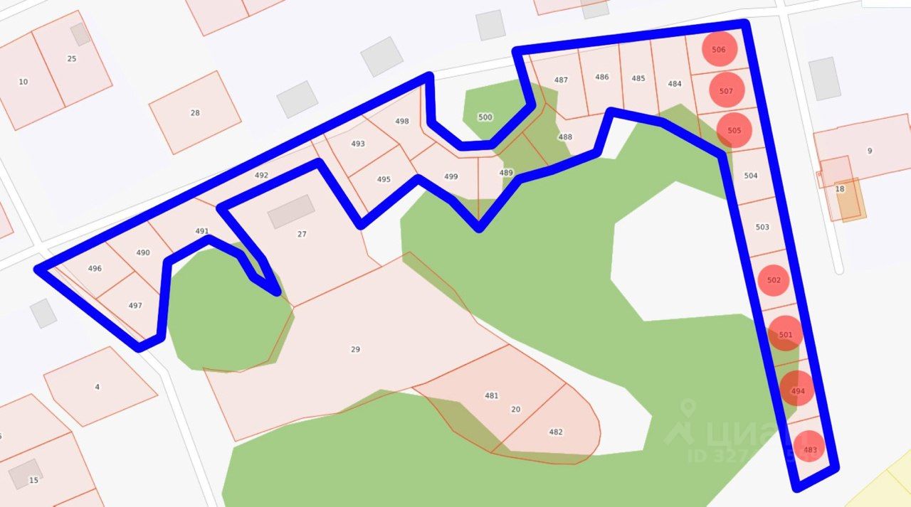 Участки с красной точкой- проданы.