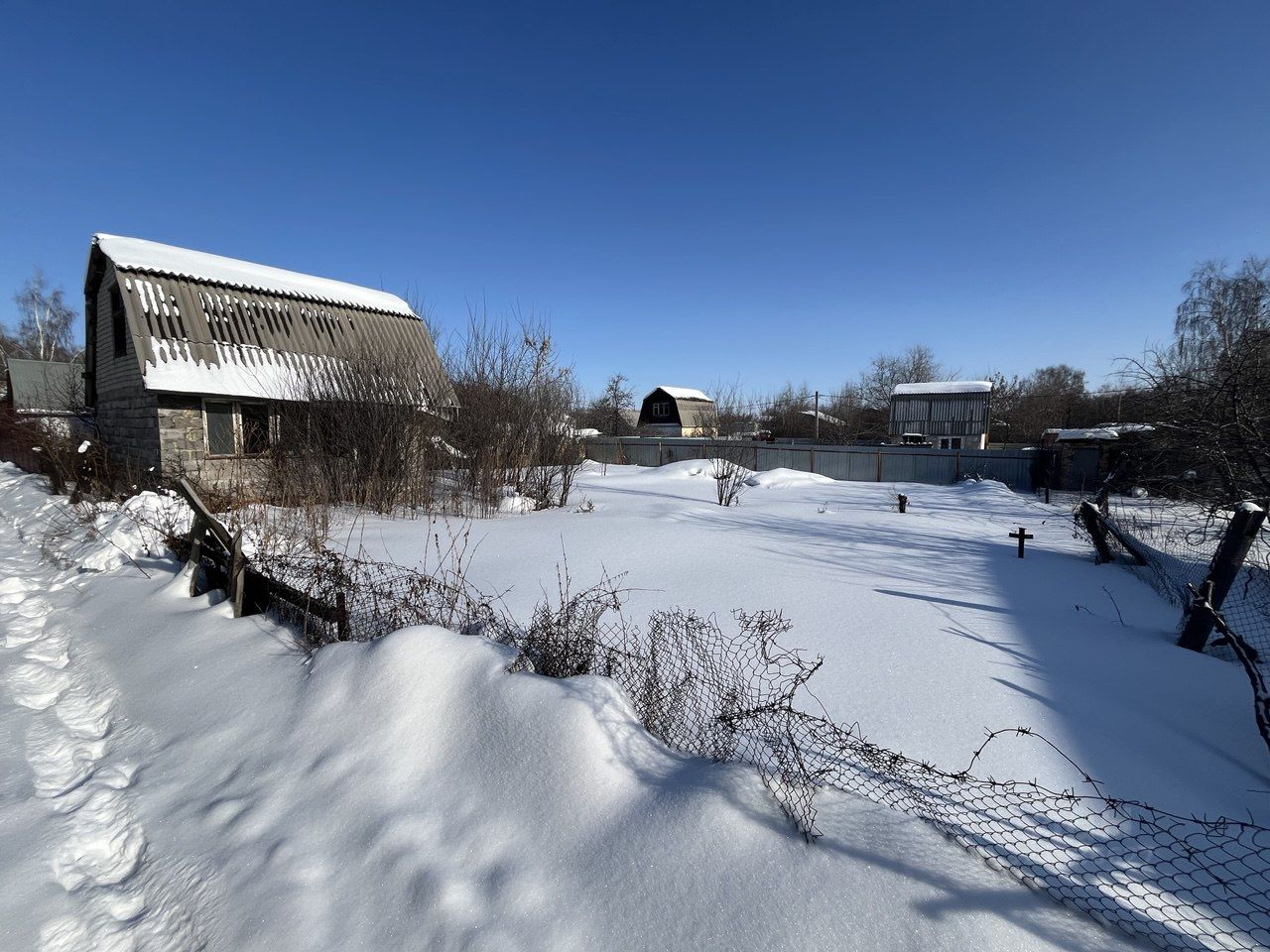 На территории участка построен капитальный дом из шлакоблока. Дом не эксплуатировался и требует ремонта. Дом на кадастровый учет не поставлен. Участок расчищен. 1 собственник. Торг уместен.