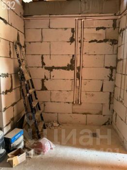 В выведена труба и выложена стена под камин.