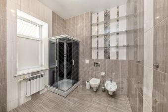 Инженерные коммуникации: электричество 30 кВт, отопление от газового котла, теплый пол, радиаторы на стенах, собственная скважина 51 метр, септик локальной очистки.
