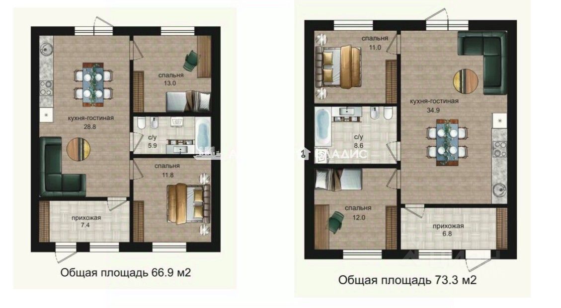 • Кухня - гостиная: 28,8 м²