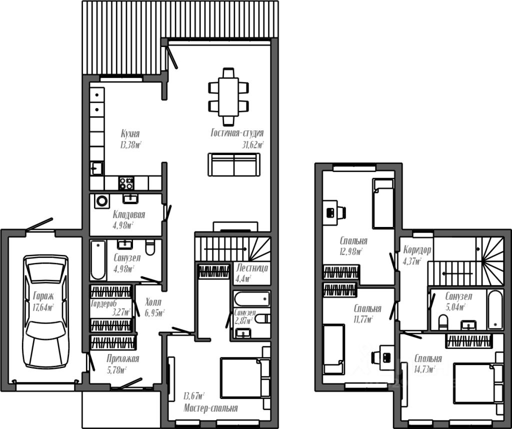 Терраса, собственный земельный участок и теплый просторный гараж в каждом доме