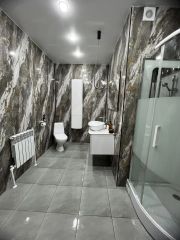 Потолки во всем доме натяжные, много освещения в каждой комнате.