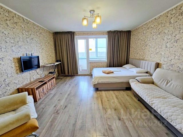 Отличная студия с видом на озеро, в новом, современном жилом комплексе. Светлая , уютная квартира для тех, кто хочет отдохнуть, приехал работать и тех, кто ищет уют и спокойствие. В студии есть всё необходимое: двуспальная кровать, комфортный диван Телевизор, Wi-Fi Санузел с ванной и стиральной машиной Уютный балкон с шикарным видом. На территории благоустроенный двор, с детской площадкой, закрытая территория.