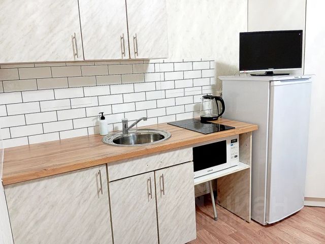 Кухонная зона: газовая плита, разнообразная посуда, микроволновка, кофеварка, чайник, чай, кофе, конфеты.