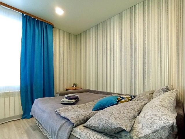 Однокомнатные апартаменты стандарт. Уютная однокомнатная квартира, вместимостью до трех человек. В квартире комфортная двуспальная кровать+полутораспальная. Квартира так же оборудована необходимой техникой: холодильник, стиральная машина, микроволновая печь, электрочайник, утюг, фен, газовая плита.